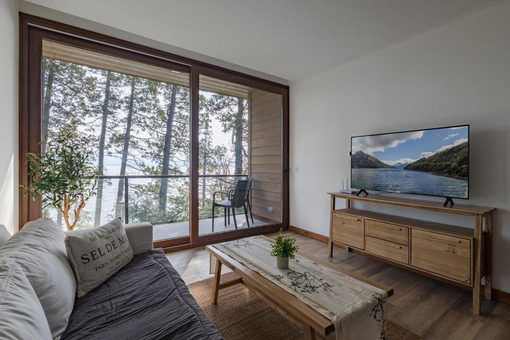 Departamento con vista al lago se encuentra en la siguiente dirección: Av. Exequiel Bustillo 4900 Barrancas al Lago 415, San Carlos de Bariloche, Argentina.